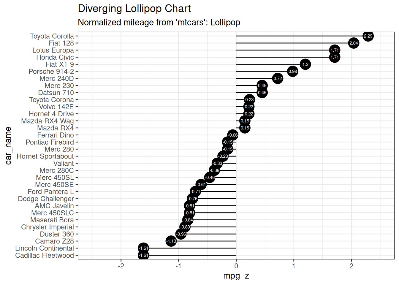 ggplot(mtcars_new, aes(x = car_name, y = mpg_z, label = mpg_z)) +